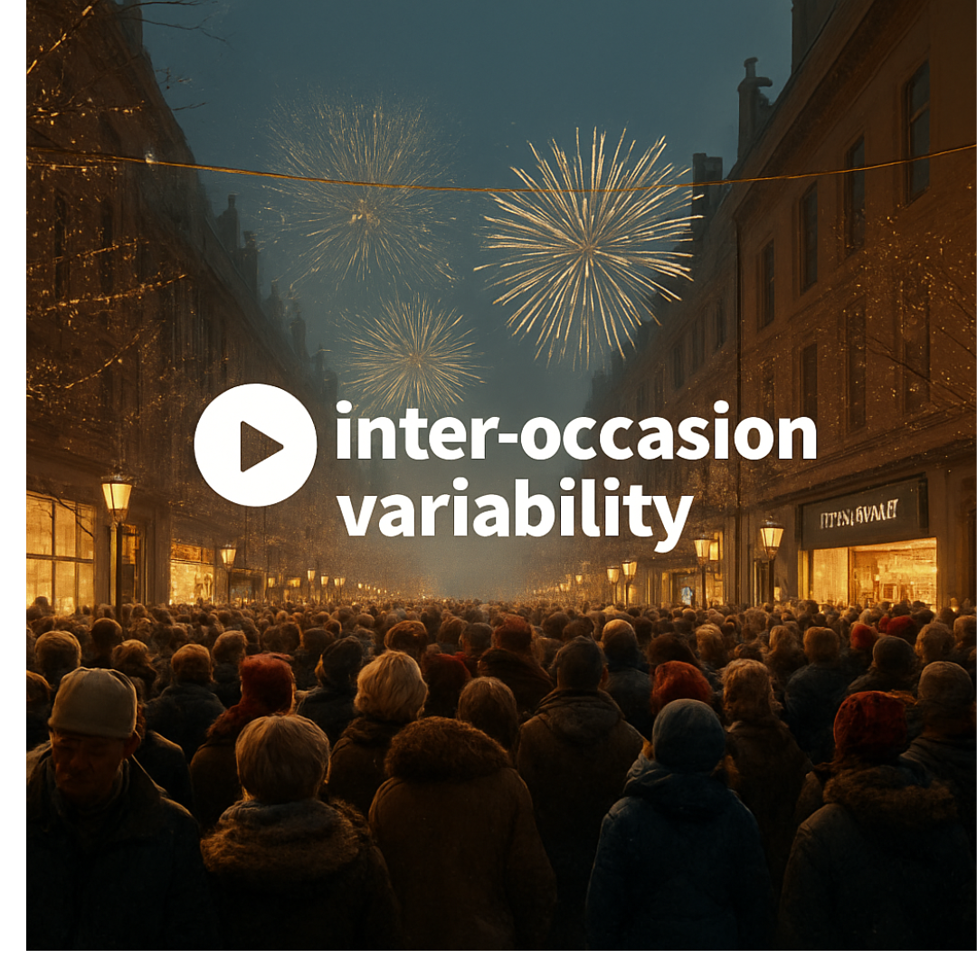 Inter-occasion variability Happy new year! With the holidays over we had the opportunity to celebrate many special occasions. I invite you to celebrate a new occasion for nlmixr2 – inter-occasion variability. We now support inter-occasion variability estimation in nlmixr2! Implementing inter-occasion variability in models To implement inter-occasion variability in nlmixr2 models you simply have to specify that the variable is an occasion variable, say occ: iov.cl ~ 0.1 | occ The ~ syntax is similar to how between subject variability is specified, the addition of | tells that this a between occ variability.